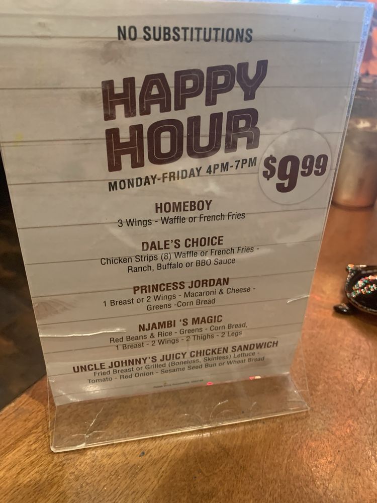 3 wings with a choice of a waffle or french fries (no substitutions).